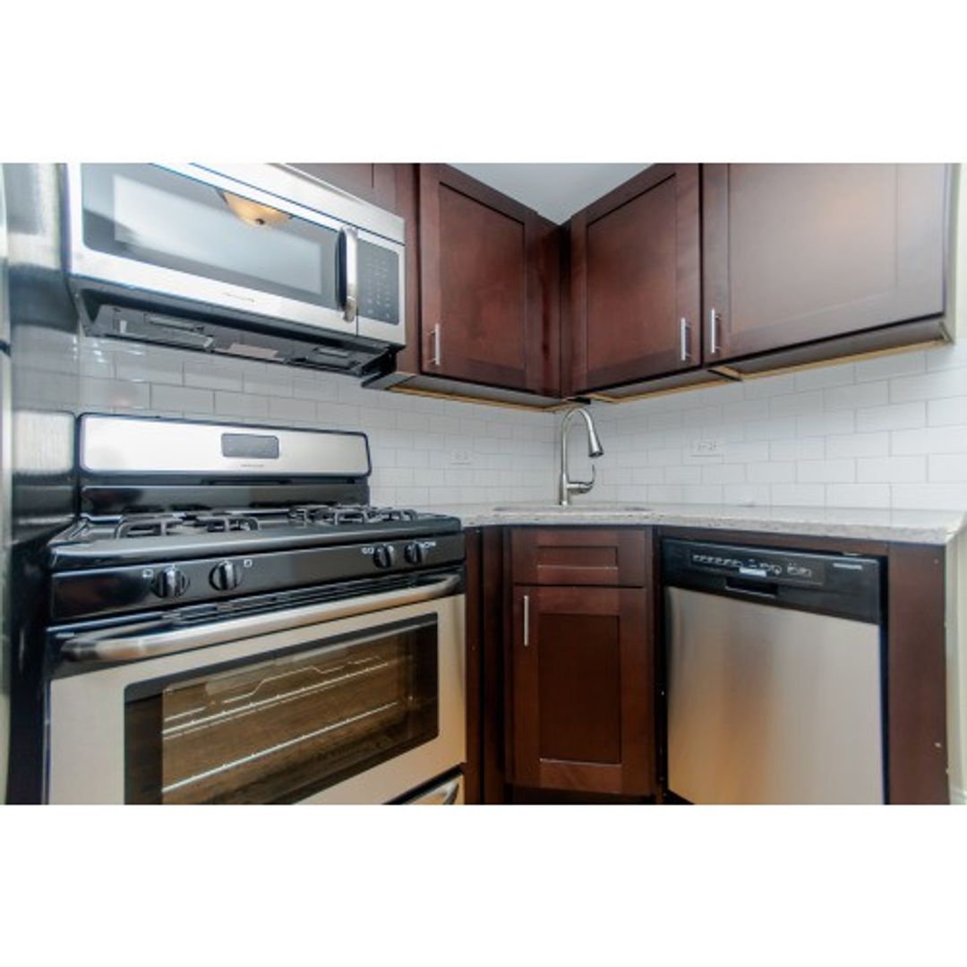 - Updated cabinetry and countertops with a full suite of stainless steel appliances, including a dishwasher.