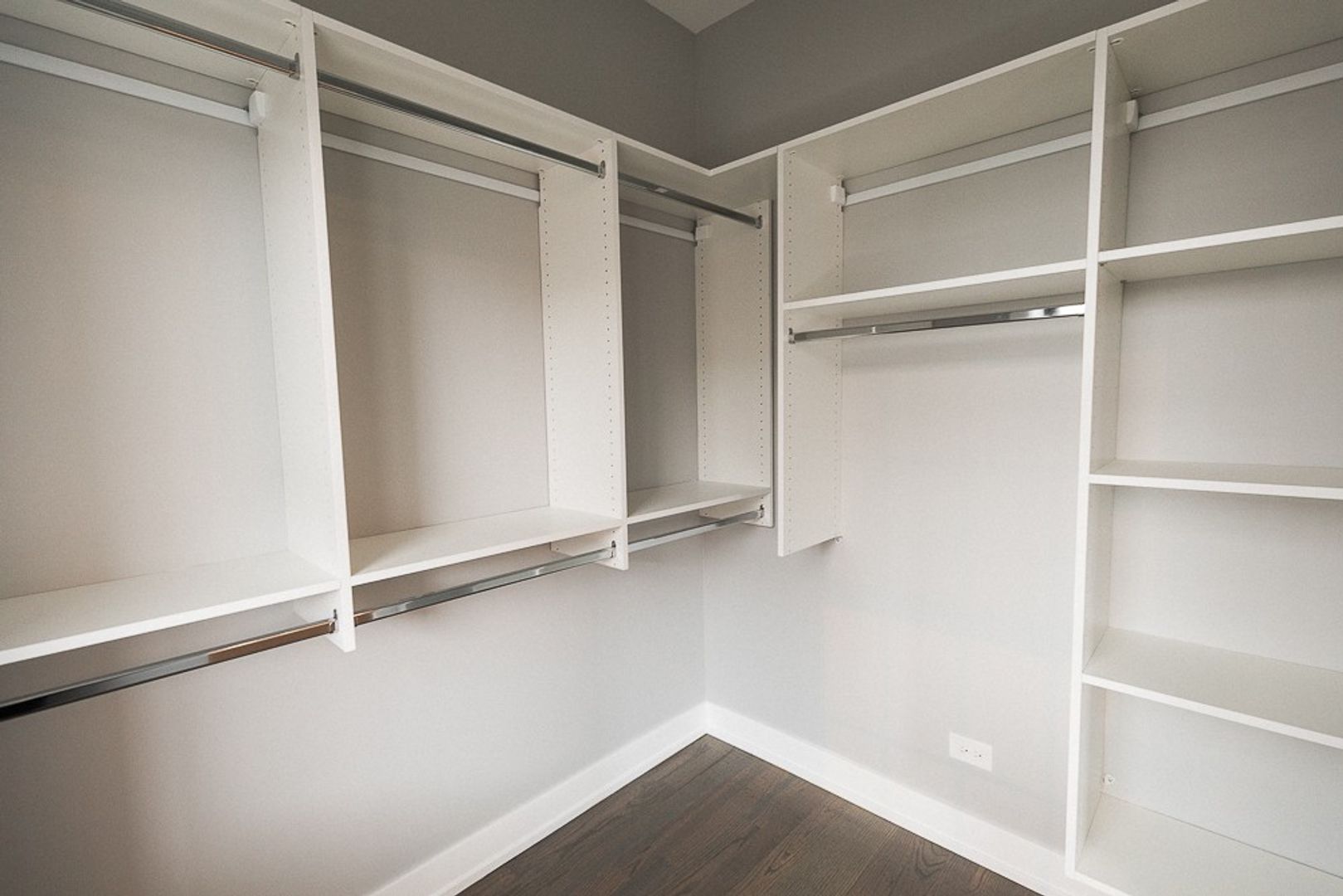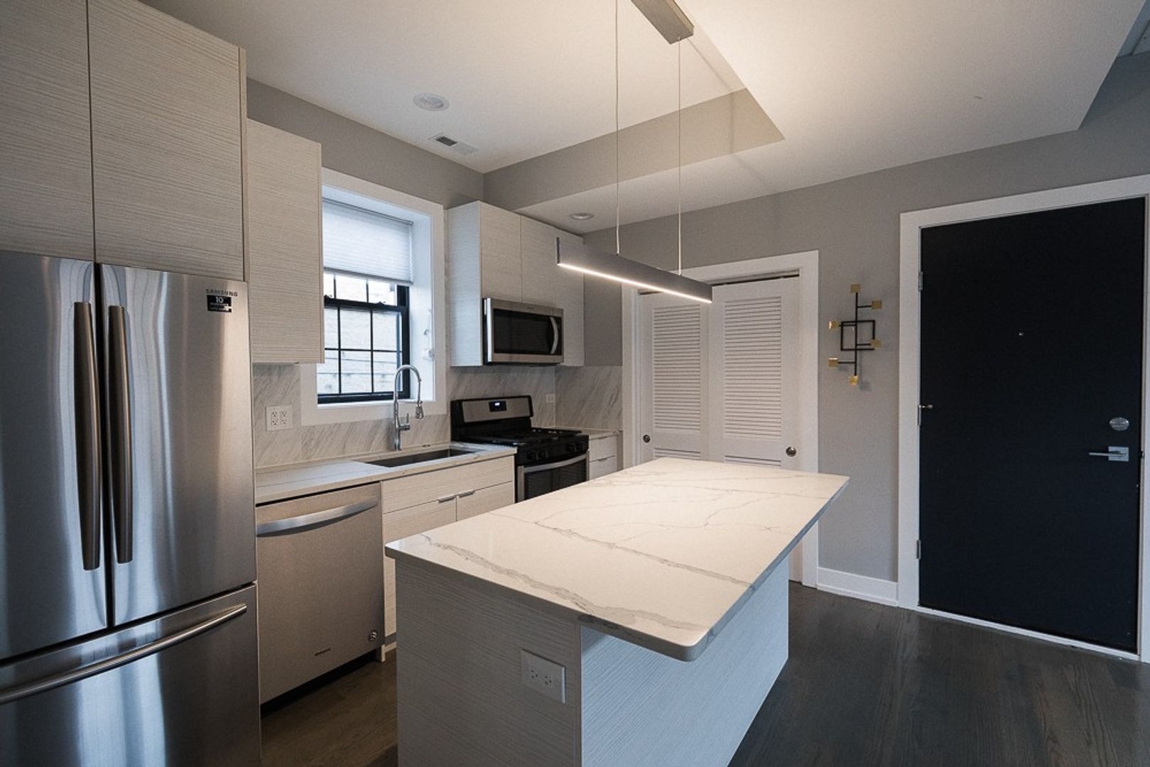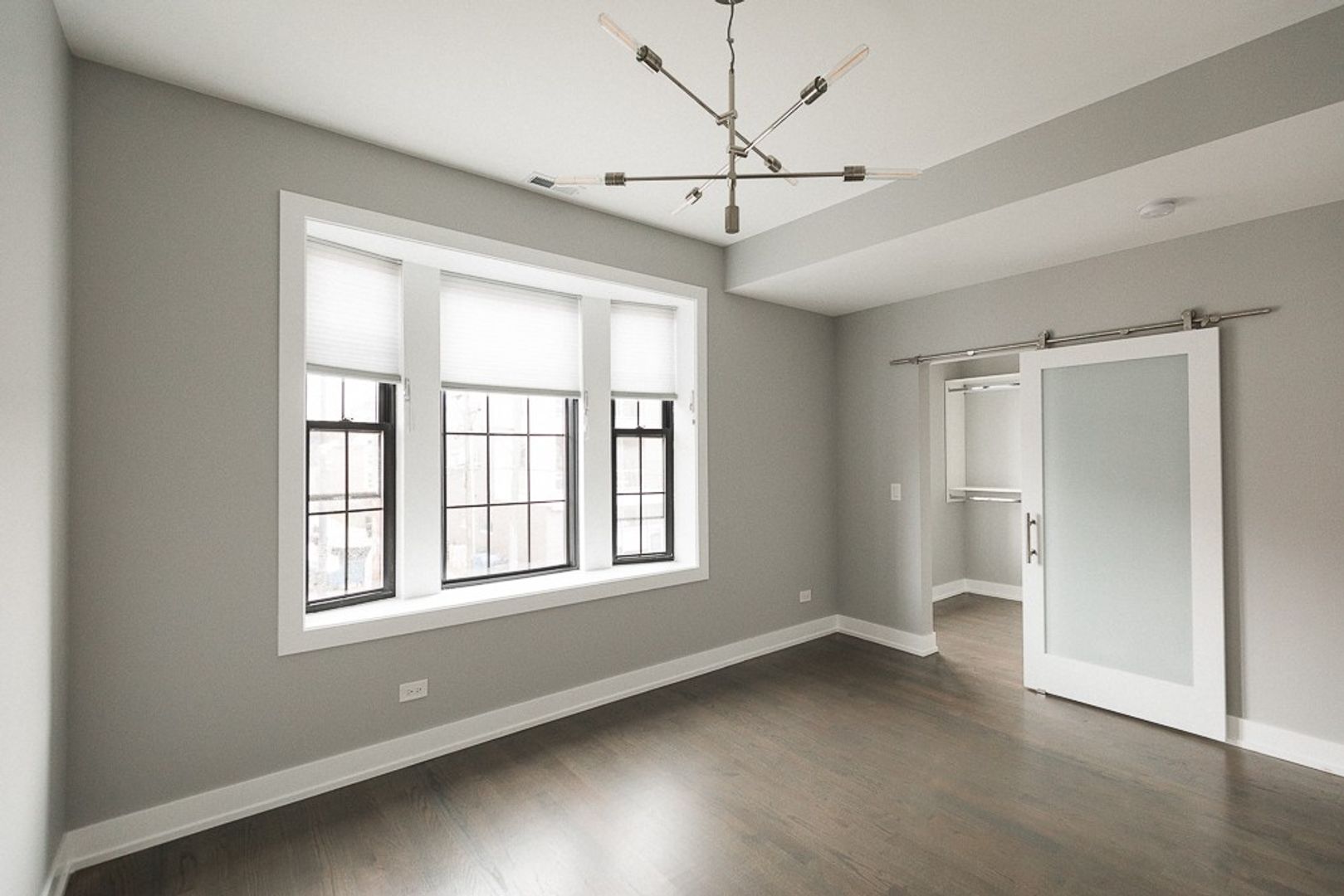 This 1BD/1BA apartment in Bucktown offers a high-end interior and a functional layout. The unit is designed with modern designer finishes and features a spacious bedroom with significant natural light and ample closet storage.