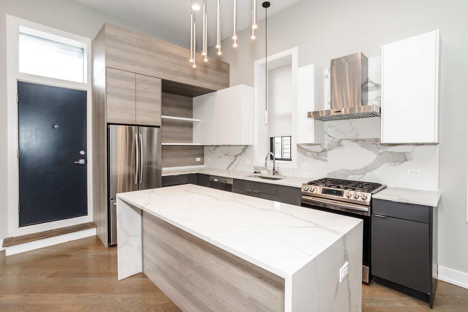 This 3-bed/3-bath unit in a walk up building is packed with designer finishes and fixtures. The building is in a great neighborhood location with a retail space on the ground floor.